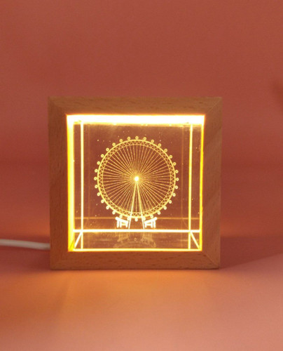 شب خواب کریستالی لیزری سه بعدی چراغ دار مکعب فریم چوبی 6/5×6/5 سانتی چرخ و فلک