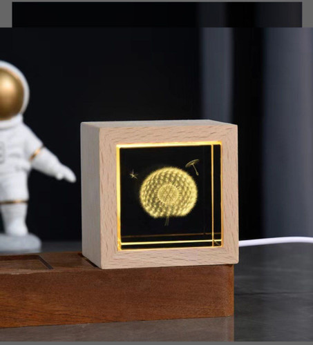 شب خواب کریستالی لیزری سه بعدی چراغ دار مکعب فریم چوبی 6/5×6/5 سانتیمتر قاصدک