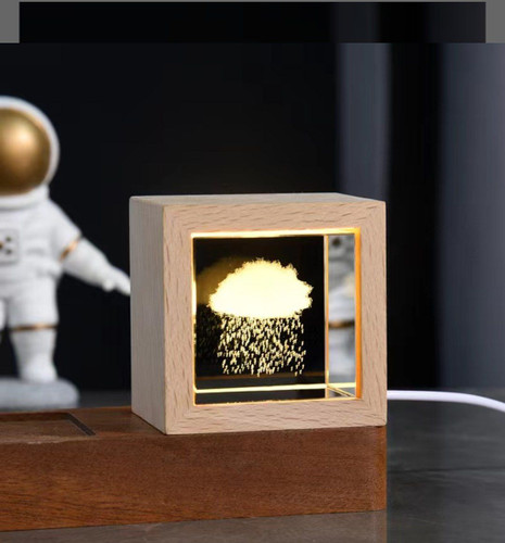 ناموجودشب خواب کریستالی لیزری سه بعدی چراغ دار مکعب فریم چوبی 6/5×6/5 سانتیمتر ابر بارانی