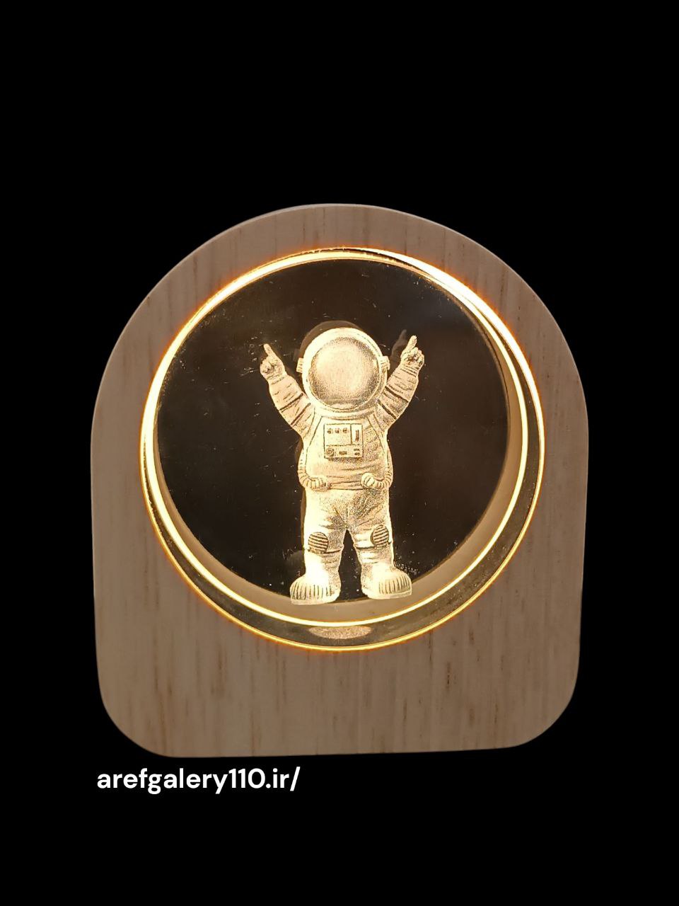 چراغ خواب کریستال گرد با قاب چوبی طرح فضا نورد بعدی/وارداتی