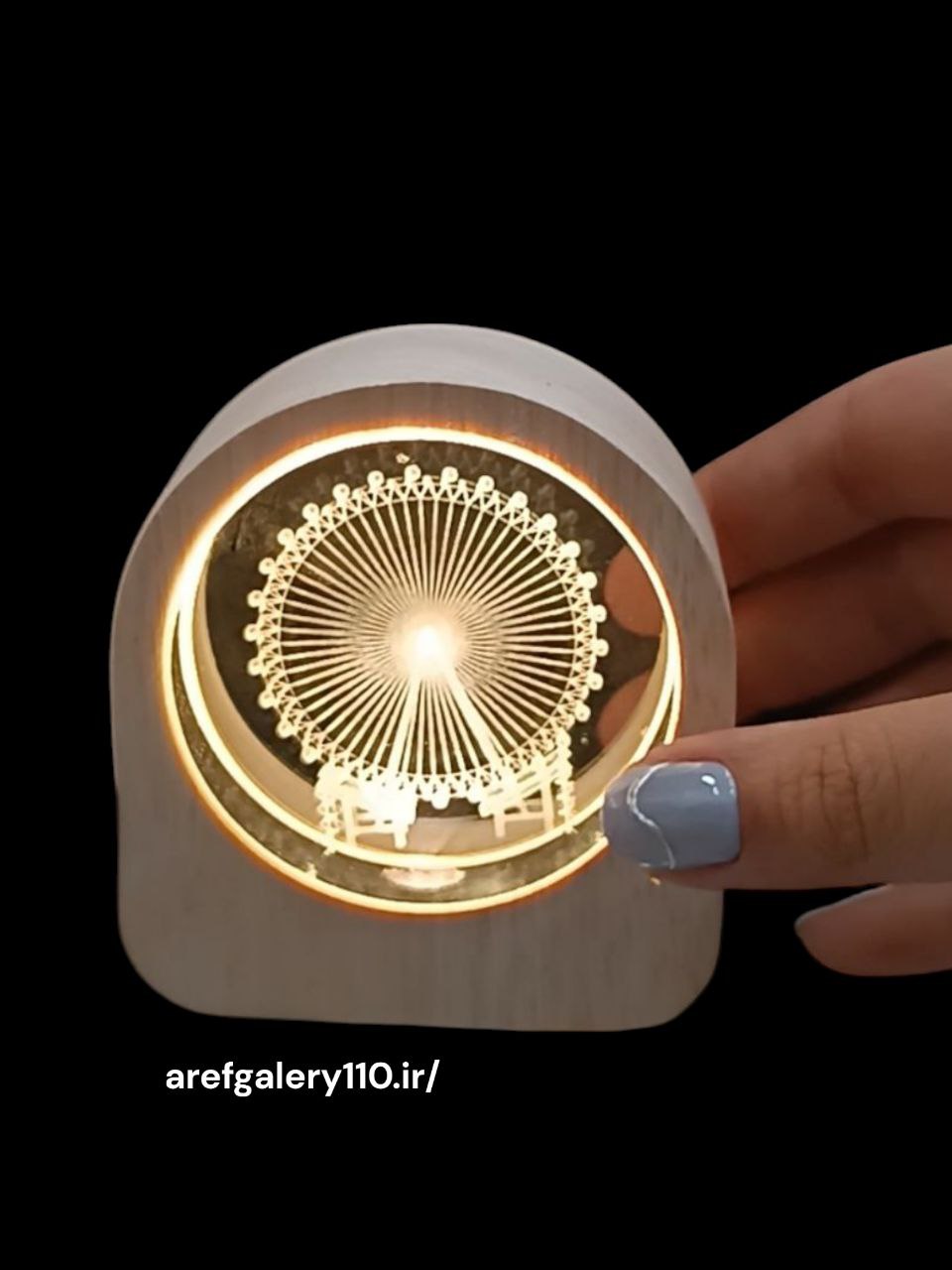 چراغ خواب کریستال گرد با قاب چوبی طرح چرخ و فلک سه بعدی/وارداتی