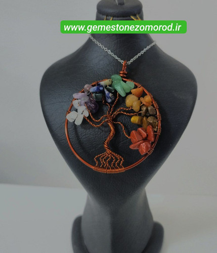 خرید و قیمت گردنبند هفت چاکرا /درخت زندگی/ طرح دایره ای رنگ مسی/ سنگ طبیعی و درجه یک