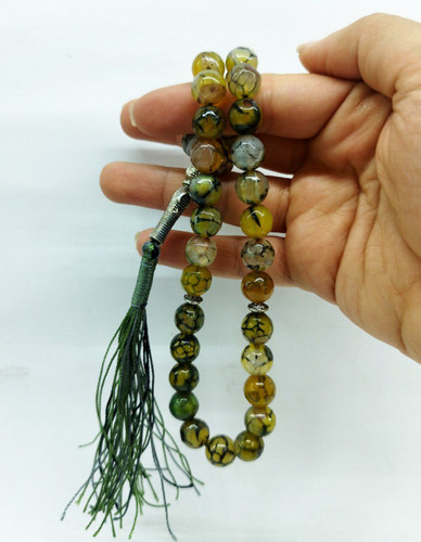 قیمت وخرید تسبیح عقیق دراگون/ رنگ سبز و زرد / تراش خورده سایز ۱۰