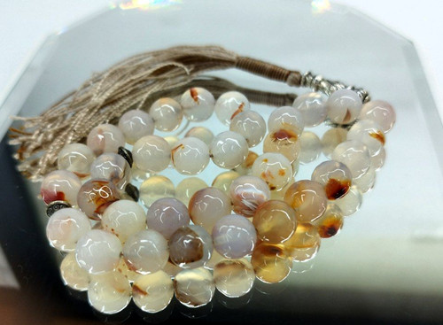 قیمت وخرید تسبیح عقیق شجر سفید/ کد۱۲۰ / 33دانه /تراش گرد سایز ۱۰