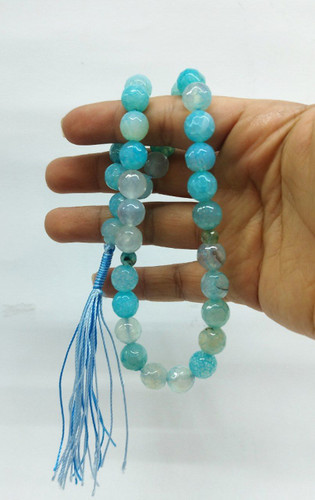 قیمت وخرید تسبیح عقیق دراگون/ رنگ آبی آسمانی/ تراش خورده سایز ۱۰