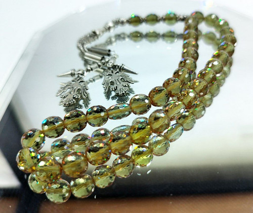تسبیح جید زرد،۳۳دانه کد ۲۵ تراش استار