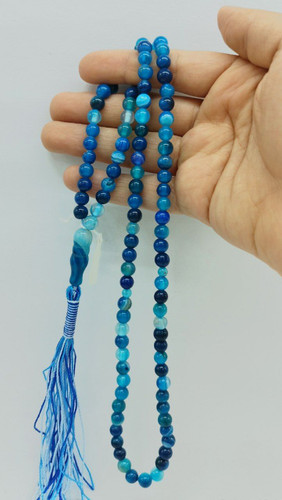 ناموجودتسبیح عیقی آبی (عقیق ماداگاسکار)، ۳۳ دانه، کد۳۱ سایز مهره ها ۸
