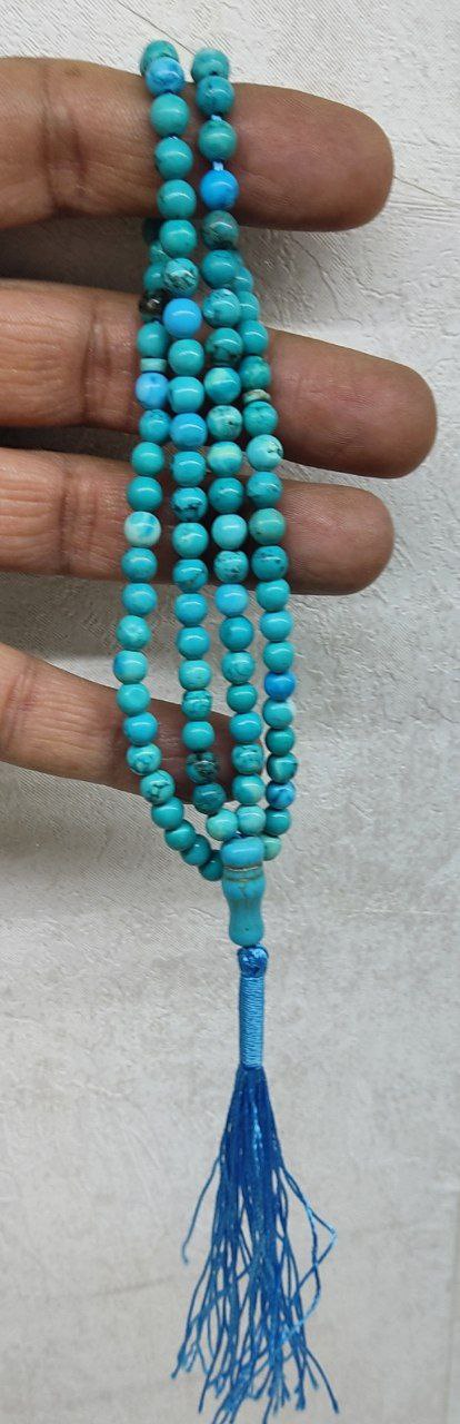 قیمت وخرید تسبیح سنگ فیروزه مصری طبیعی/ تراش گرد سایز ۵/ وارداتی / کلکسیونی