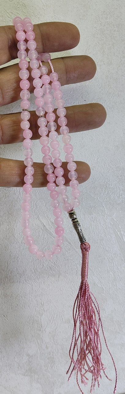 تسبیح سنگ رز کوارتز طبیعی – 33 دانه کد۲۲ با مهره 10 میلیمتر
