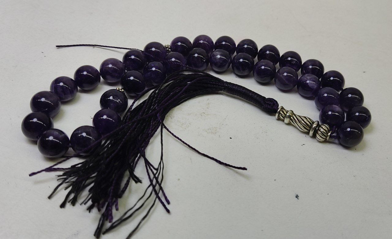 ناموجودتسبیح آمیتیست ۳۳ دانه کد۲۳ سنگ طبیعی سایز ۱۰