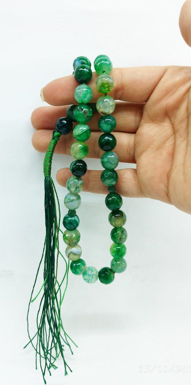 تسبیح جید سبز زمردی، ۳۳ دانه،تراش استار