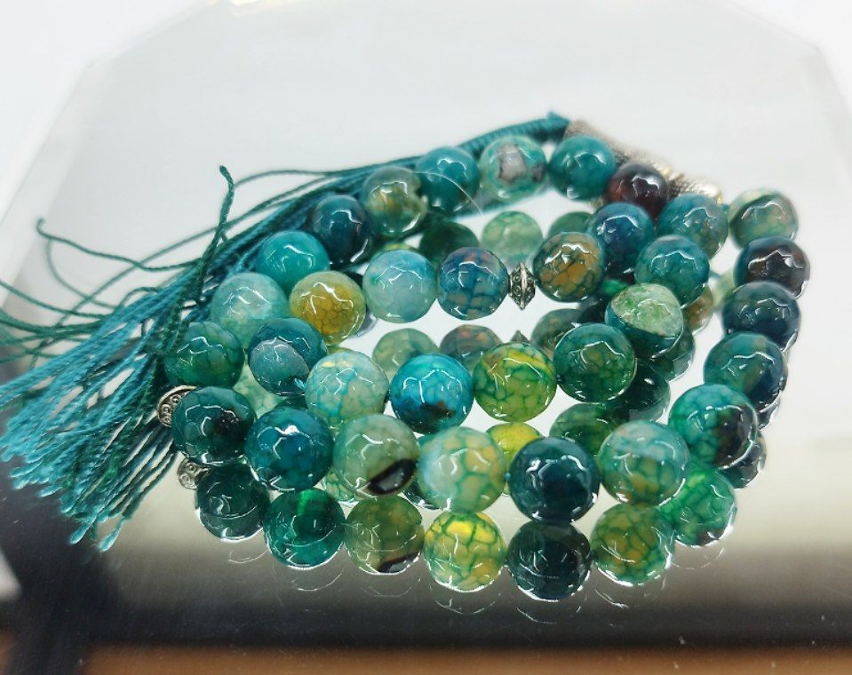 قیمت وخرید تسبیح عقیق دراگون/ رنگ سبز آبی /تراش خورده سایز ۱۰