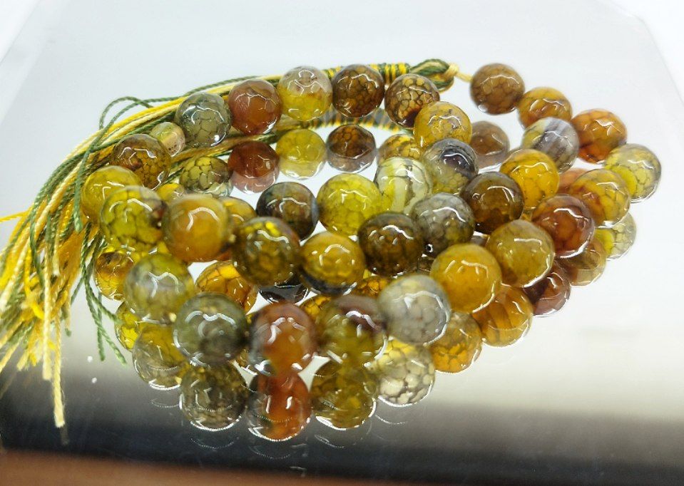 قیمت وخرید تسبیح عقیق دراگون/ رنگ زرد کهربایی/ تراش خورده سایز ۱۰