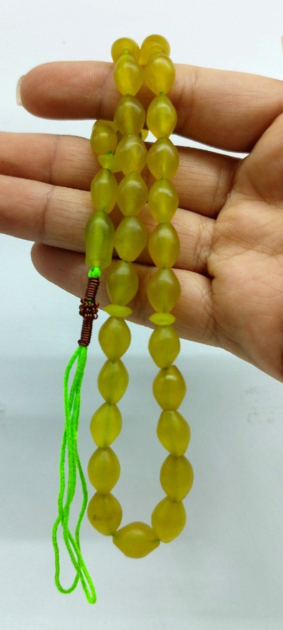 قیمت وخرید تسبیح کهربا سبز و زرد/ کد۱۲۹/ 33 دانه/ تراش گرد