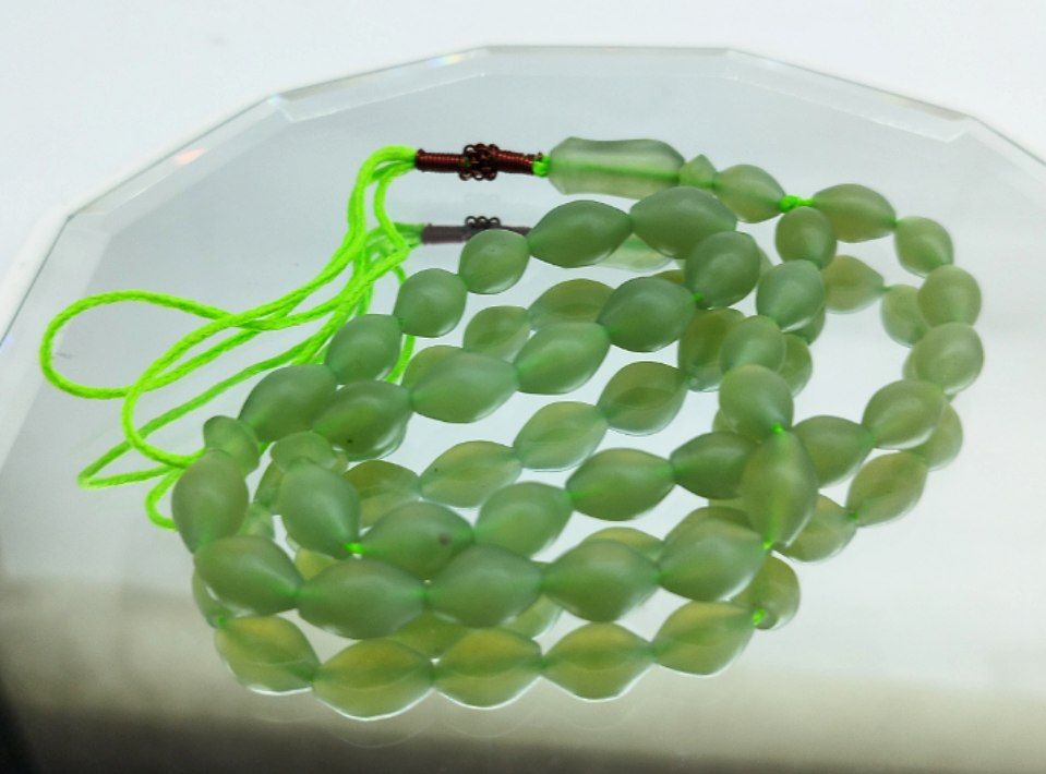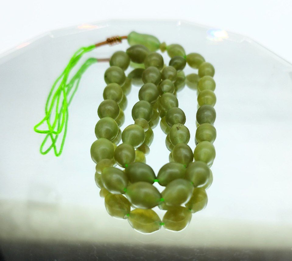 تسبیح سنگ شاه مقصود سبز حصارکی اصل افغانی رنگی خاص و کمیاب – کد ۴۳