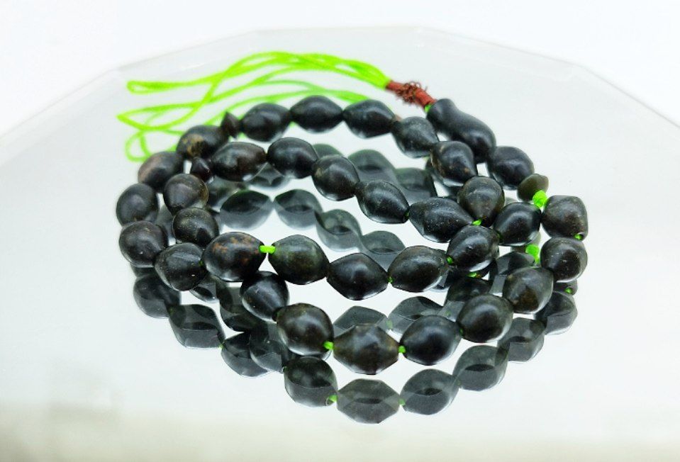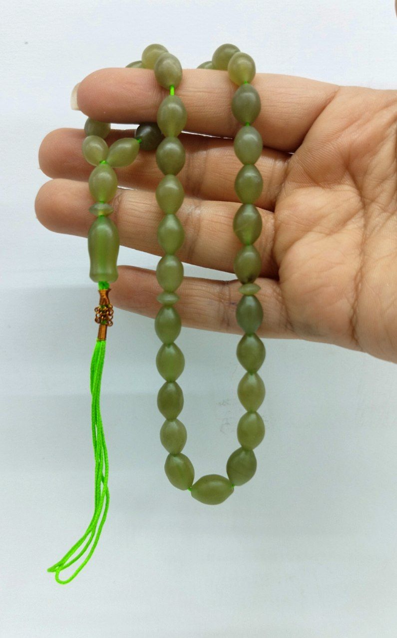 خرید و قیمت تسبیح شاه مقصود افغان/ کد۱۰۳/ تراش دست رنگ زیتونی