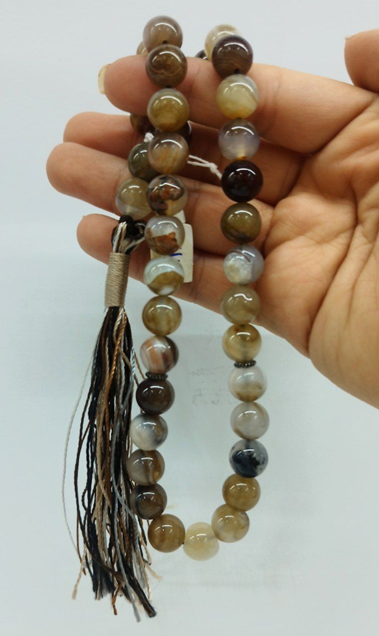 قیمت وخرید تسبیح عقیق قهوه ای/ کد۱۲۲/ 33دانه/ تراش گرد سایز ۱۰