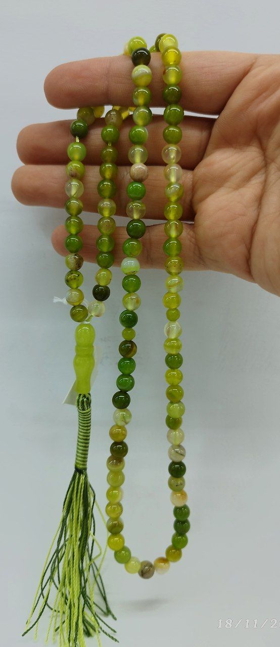ناموجودتسبیح سنگ طبیعی ، شاه مقصود کد8 رنگ زرد متمایل به سبز ۳۳دانه