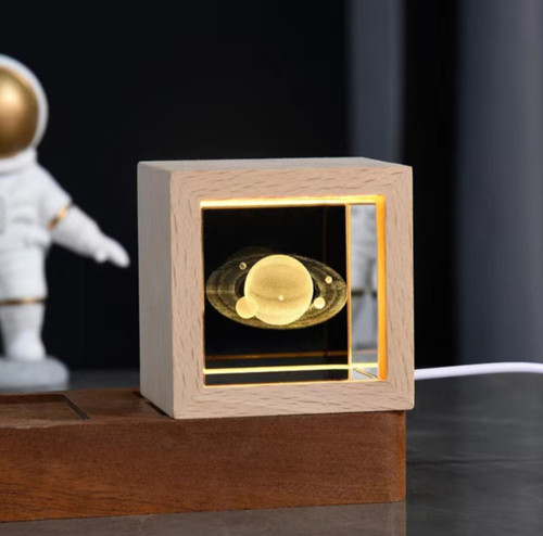 خرید و قیمت چراغ خواب مکعب کریستال با فرم چوبی طرح زحل سه بعدی/6.5 * 6.5 س