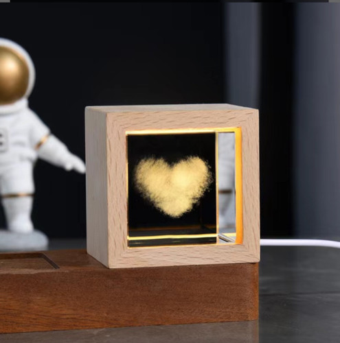 خرید و قیمت چراغ خواب مکعب کریستال با فرم چوبی طرح ابر قلبی سه بعدی/6.5 * 6.5 س