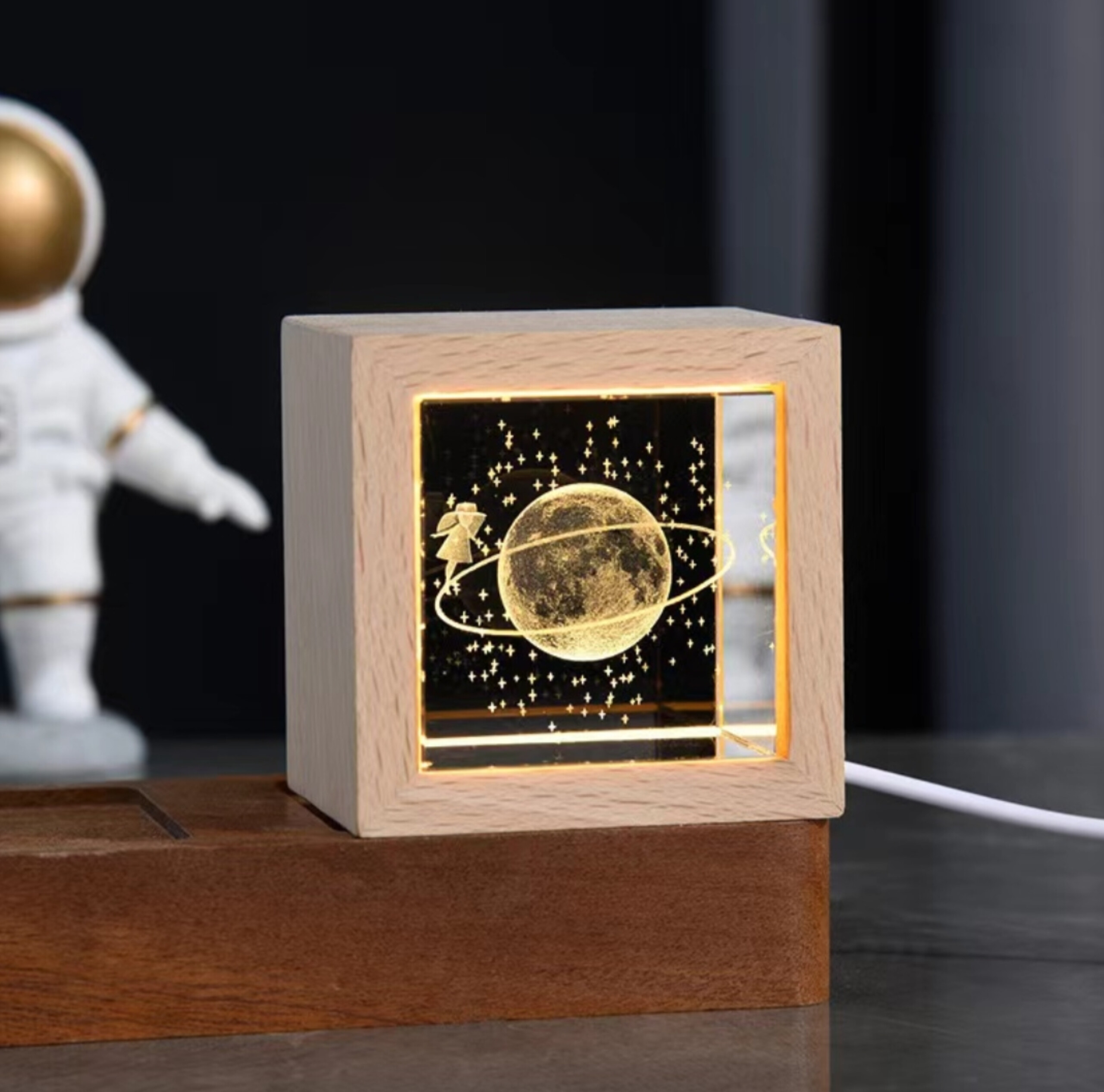 خرید و قیمت چراغ خواب مکعب کریستال با فرم چوبی طرح زحل سه بعدی/6.5 * 6.5 س