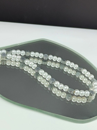 خرید و قیمت گردنبند مروارید همراه با خرج کار حدید نقره ای /قفل نقره ای