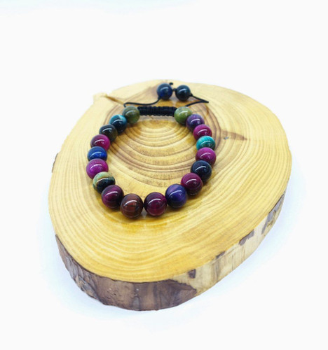 قیمت وخرید دستبند سنگ چشم ببر رنگی/ گرم کننده طبع بدن/ سنگ طبیعی و درجه یک