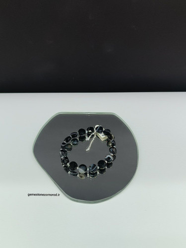 دستبند عقیق سلیمان مشکی/ تراش دایموند کات / طبیعی و درجه یک