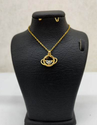 قیمت وخرید گردنبند زحل نگین دار/ نگین سوارسکی/ استیل طلایی و درجه یک