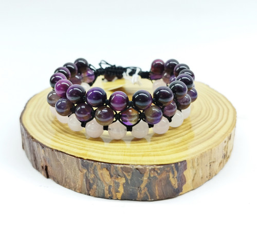 قیمت وخرید دستبند 3 ردیفه (3 لاین) / سنگ های رزکوارتز، آمیتیست، چشم ببر سرخابی / سنگ طبیعی و درجه یک
