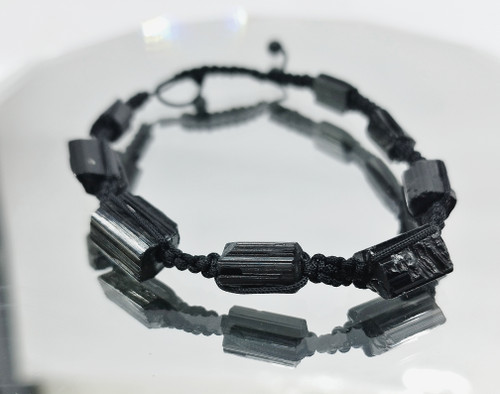 قیمت وخرید دستبند سنگ تورمالین سیاه/ تراش راف استوانه ای بلوری/ مکرومه بافی /سنگ طبیعی و درجه یک
