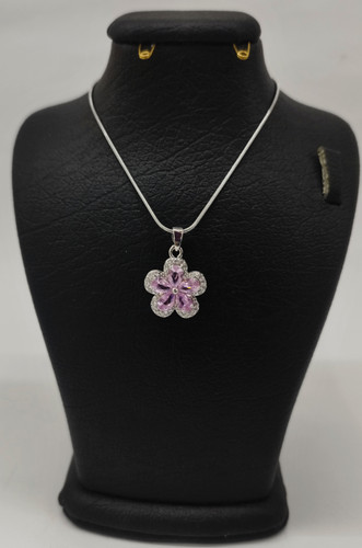 قیمت وخرید گردنبند برفی نگین صورتی / نگین سوارسکی/ زنجیر دیپلمات استیل رنگ ثابت سیلور