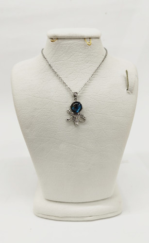 قیمت وخرید گردنبند ماه آبی آویز دار تک نگین/ نگین سوارسکی/ زنجیر ماری نازک استیل رنگ ثابت سیلور