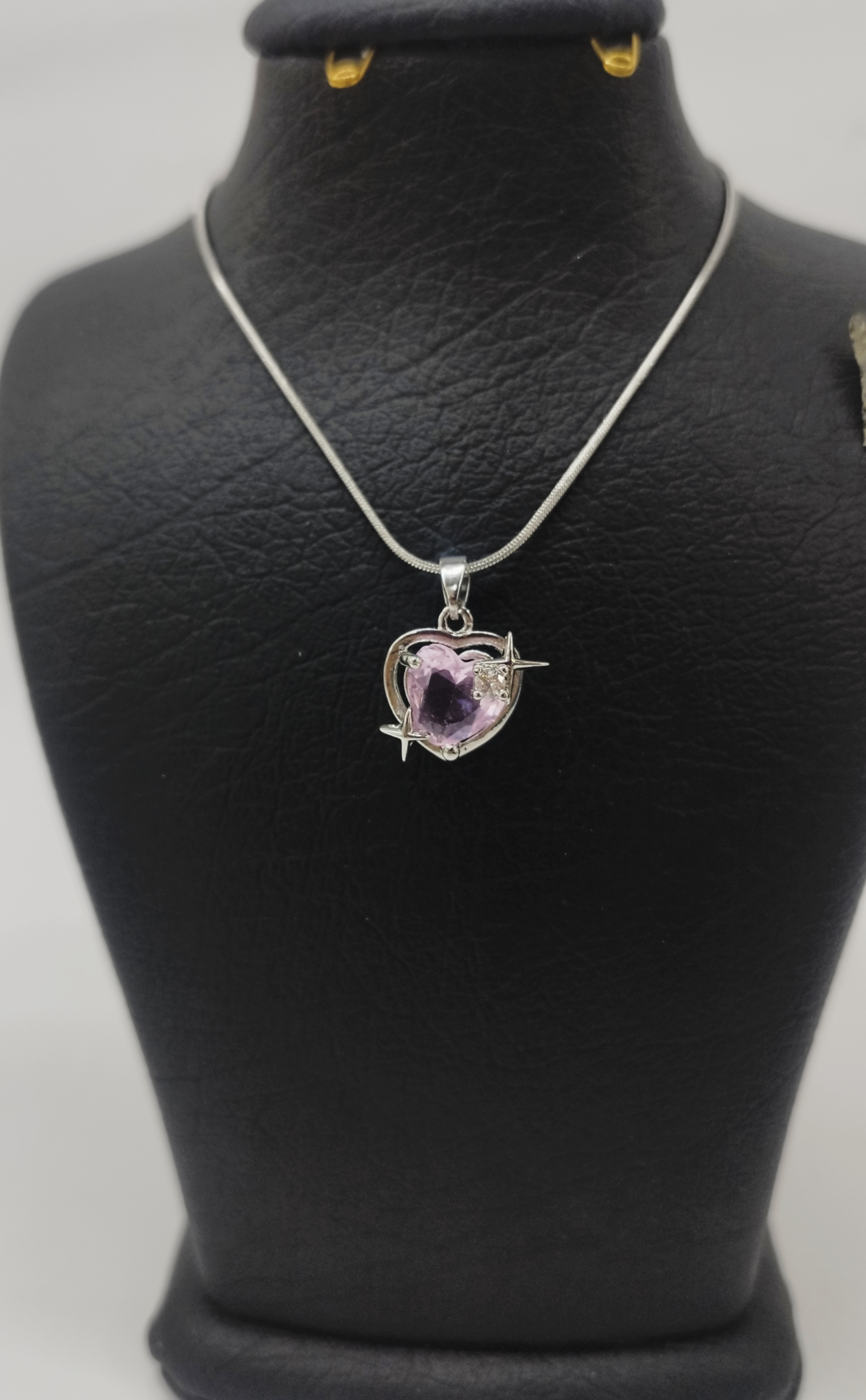 قیمت وخرید گردنبند نگین سوارسکی/ تک نگین قلب صورتی/ جنس زنجیر استیل درجه یک سیلور