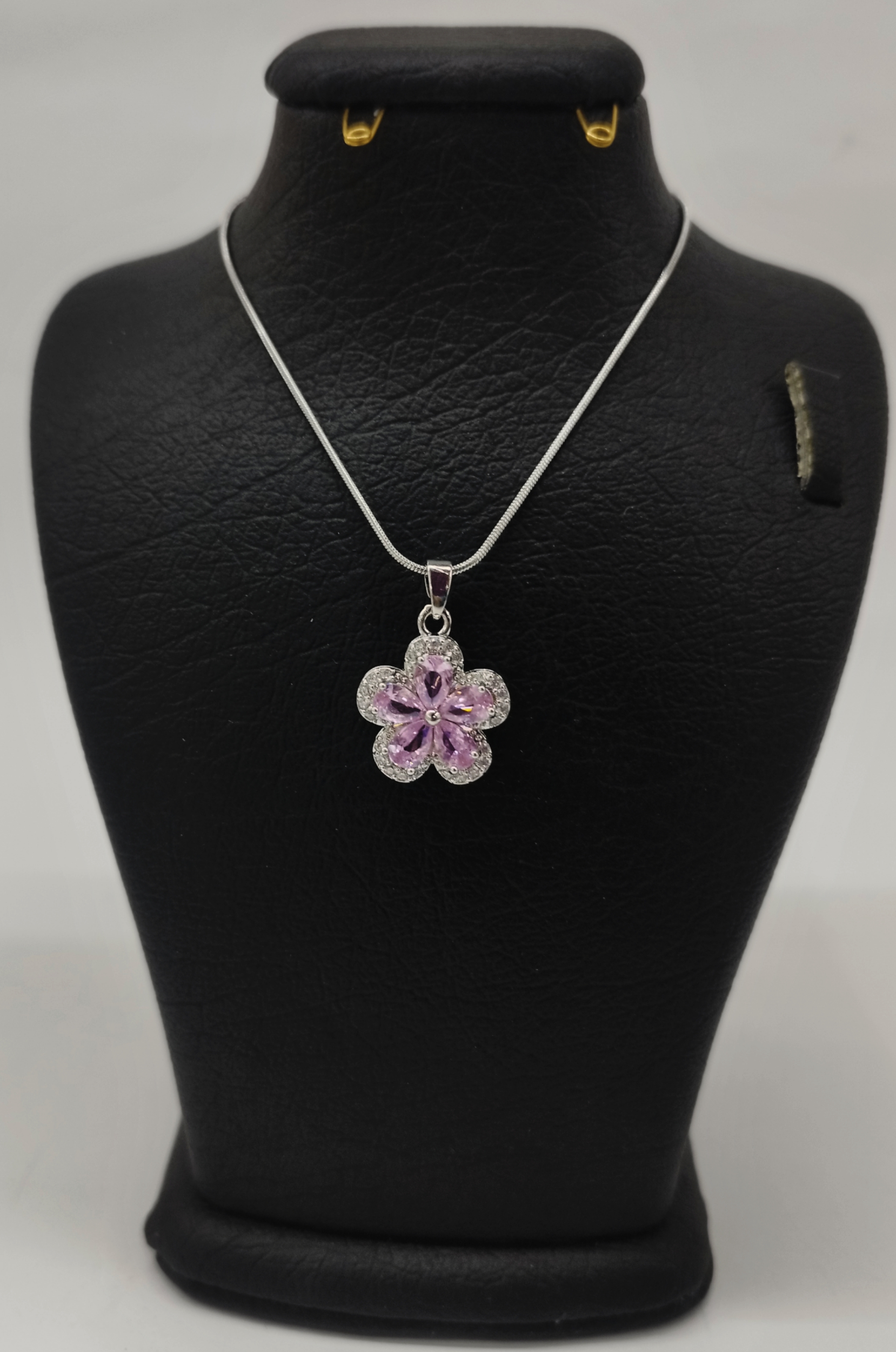 قیمت وخرید گردنبند گل نگین دار/ نگین سوارسکی/ زنجیر استیل رنگ ثابت سیلور
