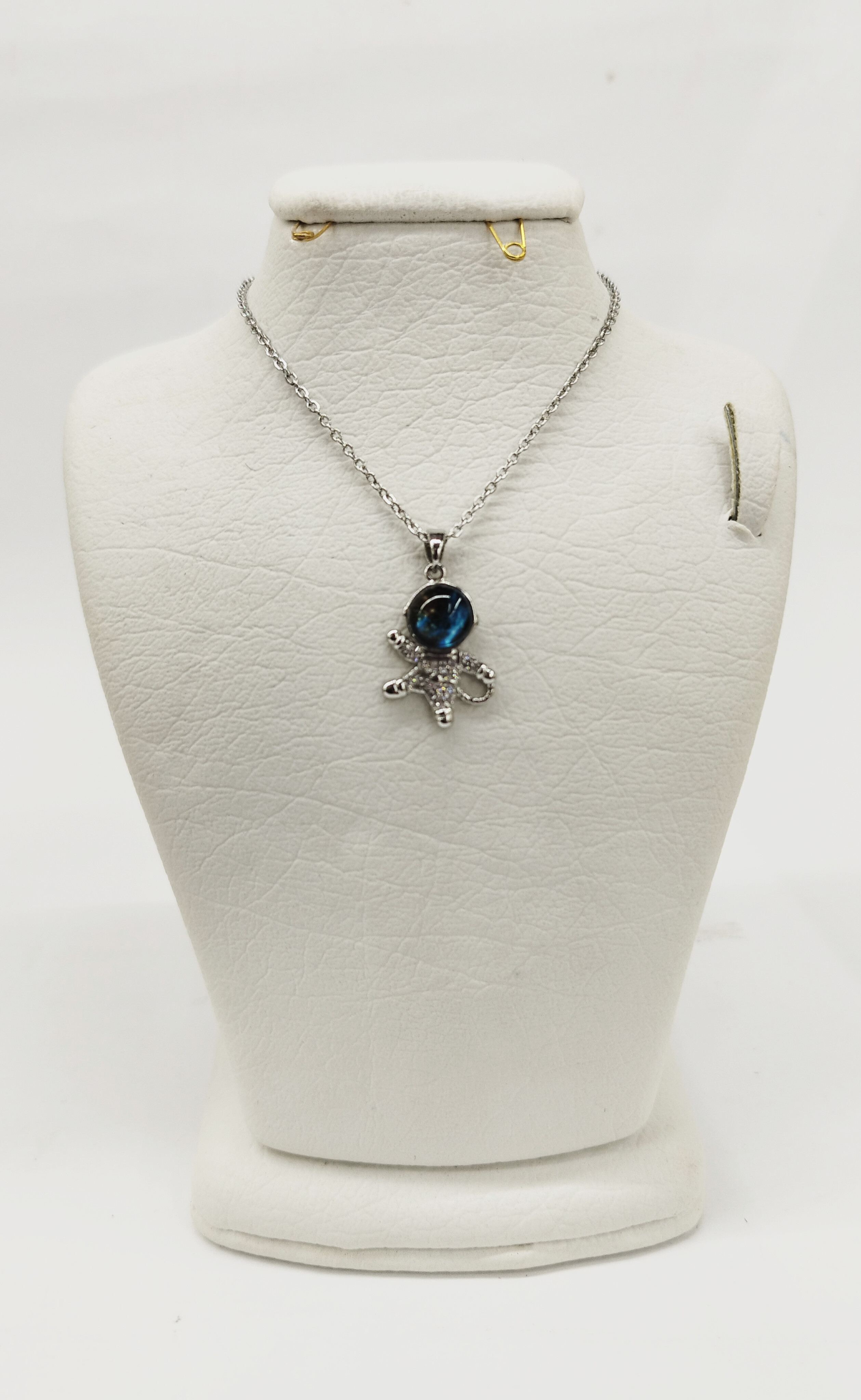 قیمت وخرید گردنبند فضا نورد فول نگین بدون ریزش/ نگین سوارسکی/ زنجیر دیپلمات استیل رنگ ثابت سیلور