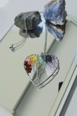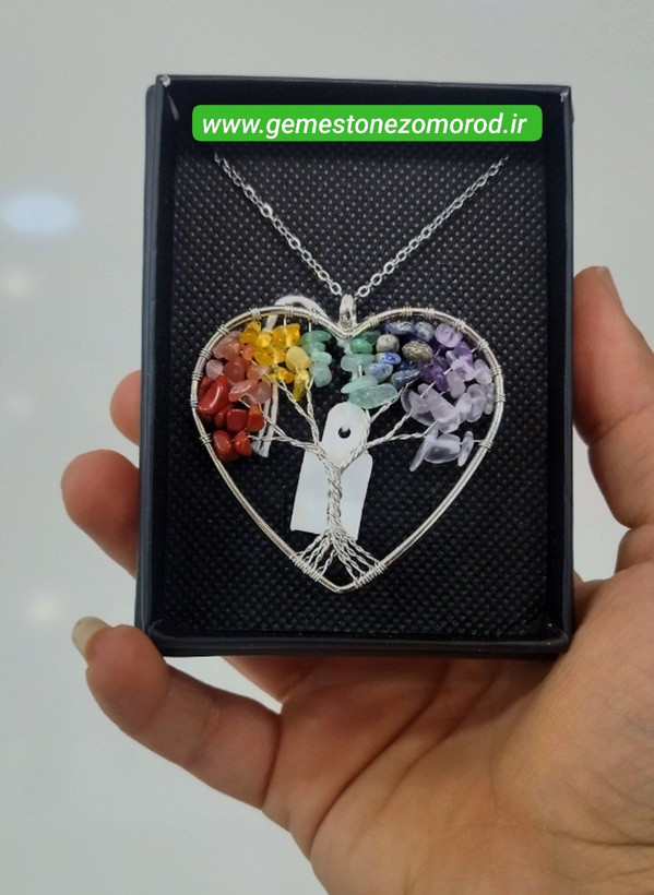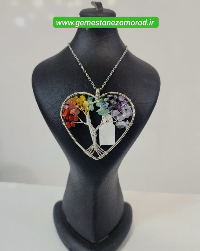 خرید و قیمت گردنبند هفت چاکرا/ درخت زندگی/ طرح قلب بزرگ سیلور/ سنگ طبیعی و درجه یک