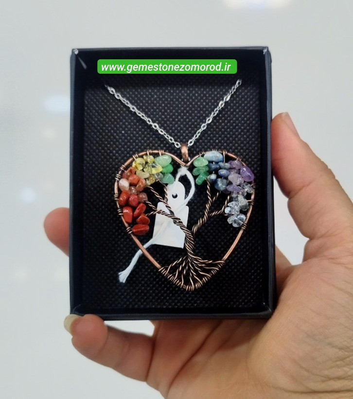 قیمت وخرید گردنبند هفت چاکرا/ درخت زندگی/ طرح قلب رنگ کسی/ سنگ طبیعی و درجه یک