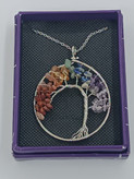 قیمت وخرید گردنبند هفت چاکرا/درخت زندگی/ طرح درخت بیدمجنون گرد/رنگ سیلور/سنگ طبیعی و درجه یک