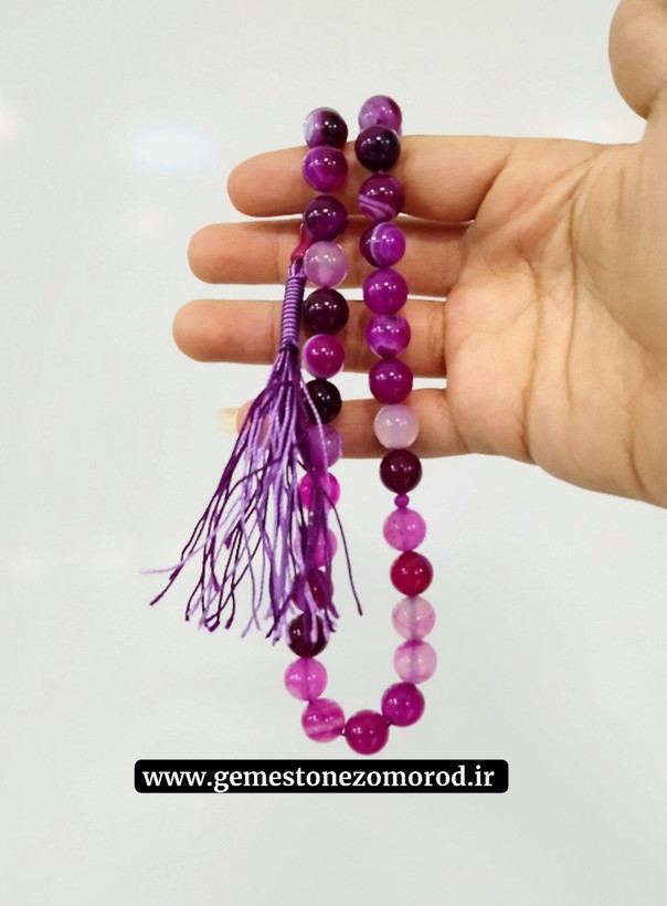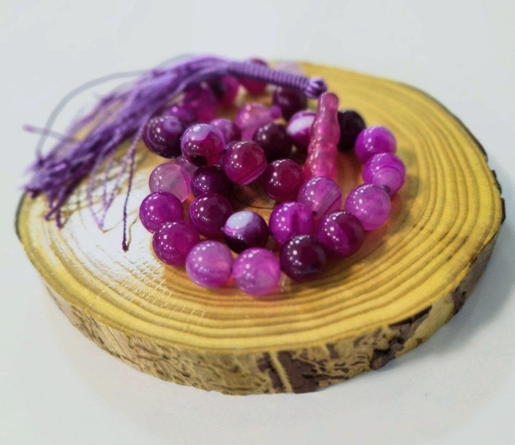 تسبیح سنگ عقیق صورتی – 33 دانه (قطر مهره 10 میلیمتر)