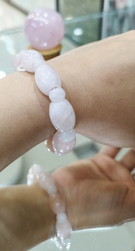 دستبند سنگ رزکوارتز طرح بیضی و کشی | آرامشبخش و انرژی مثبت