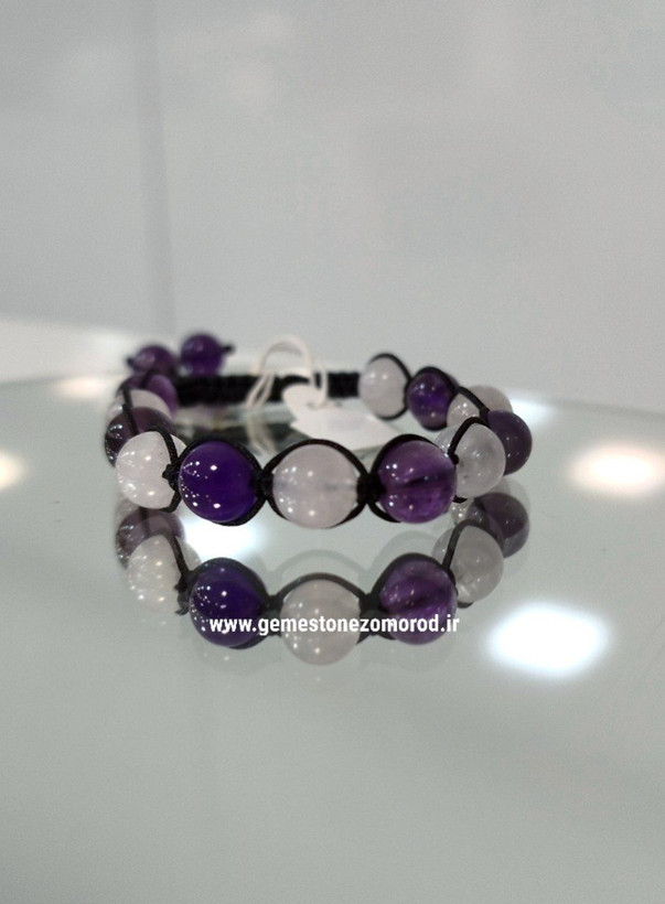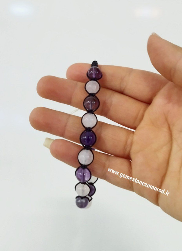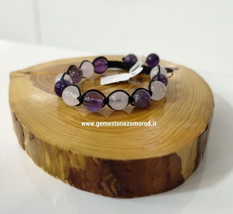 دستبند سنگ آمیتیست،رزکوارتز ، مکرومه بافی