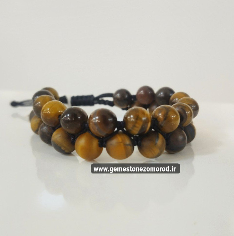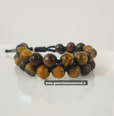 دستبند دو ردیفه سنگ چشم ببر مات و براق بافت کار دست