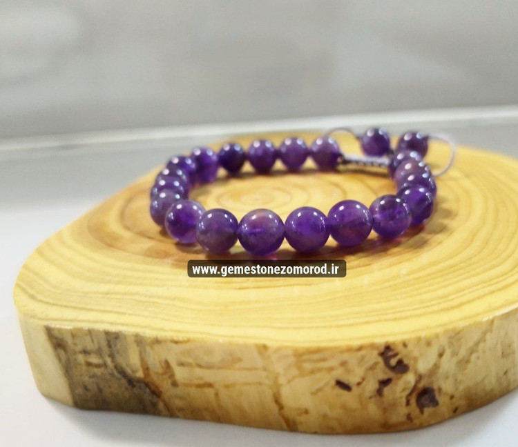 دستبند سنگ آمیتیست طبیعی ، مهره سایز ۸