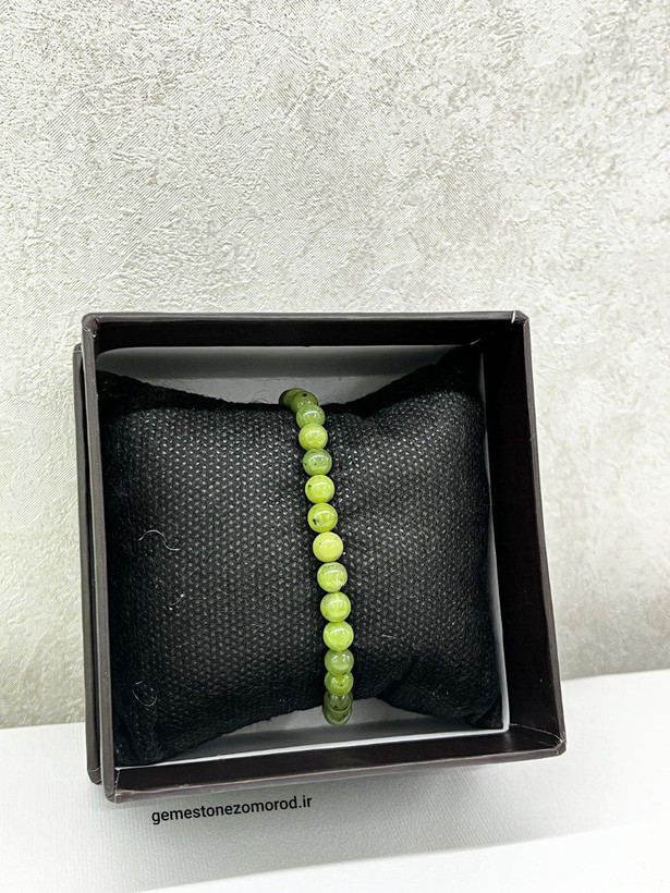 دستبند سنگ یشم سبز روشن طبیعی کانادایی – مهره ۶ میل، آرامش و انرژی مثبت