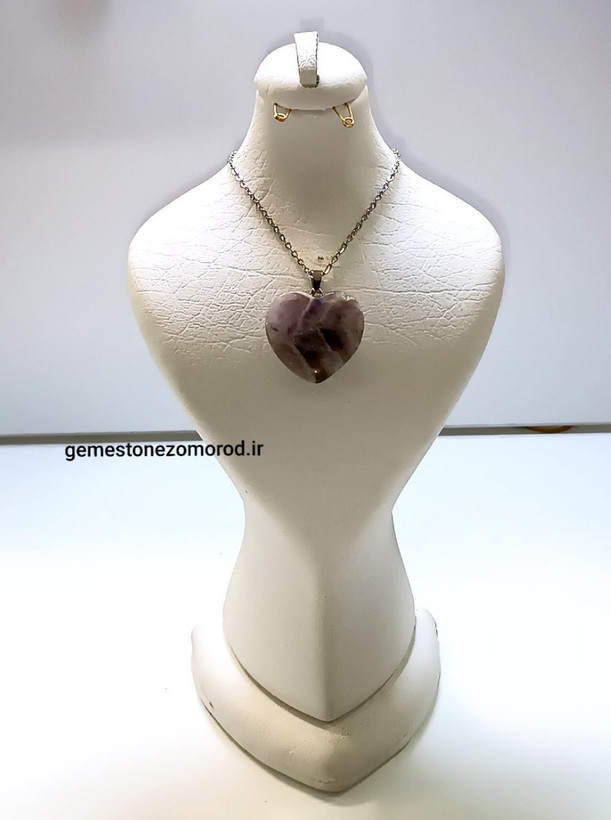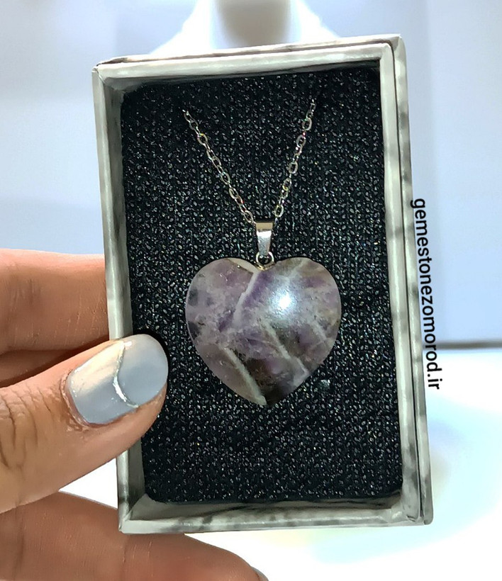 گردنبند قلب زنانه ۲۵ میل سنگ آمیتیست همراه با زنجیر استیل | برند زمرد