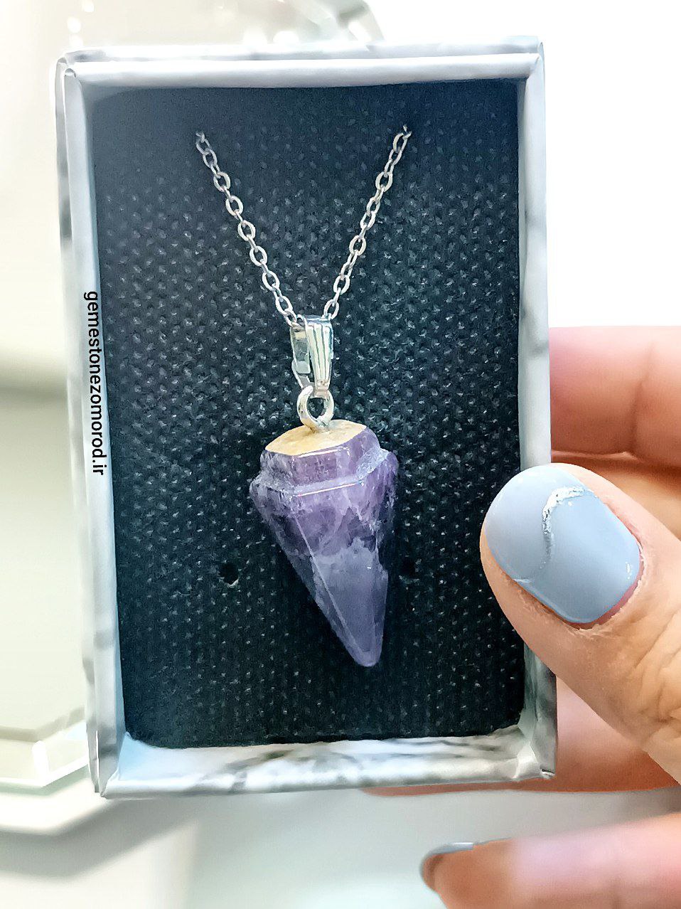 گردنبند سنگ آمیتیست/ طرح پاندولی کوچک/طبیعی و درجه یک