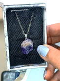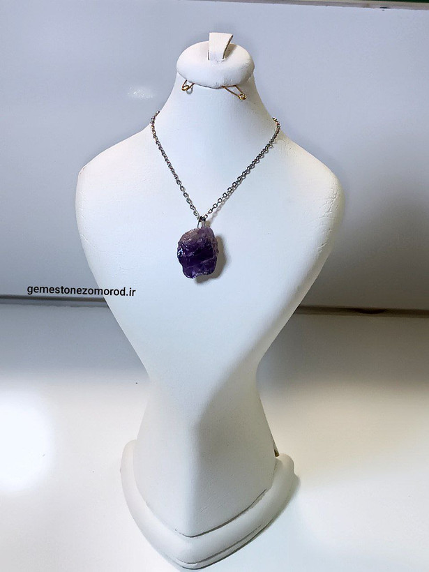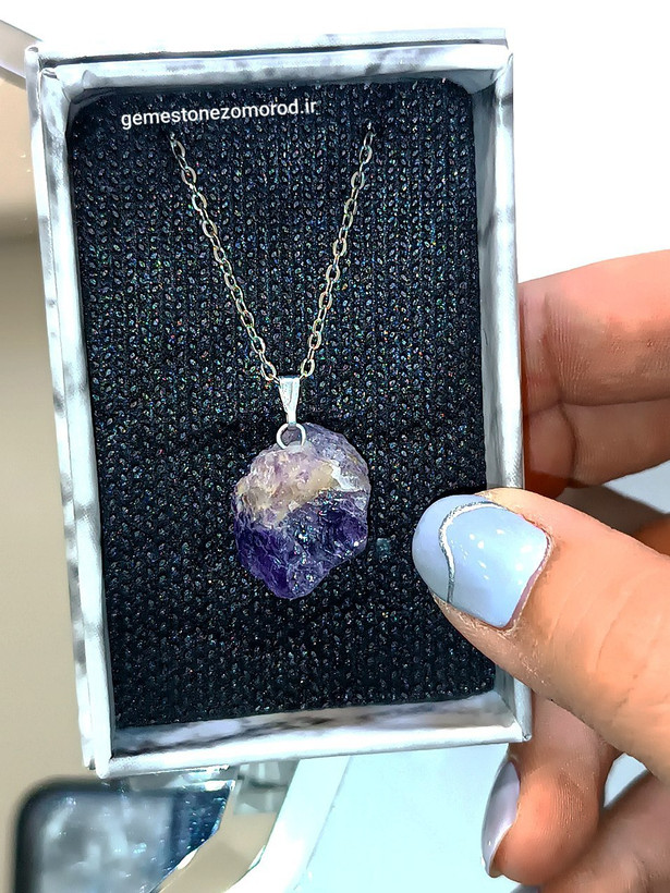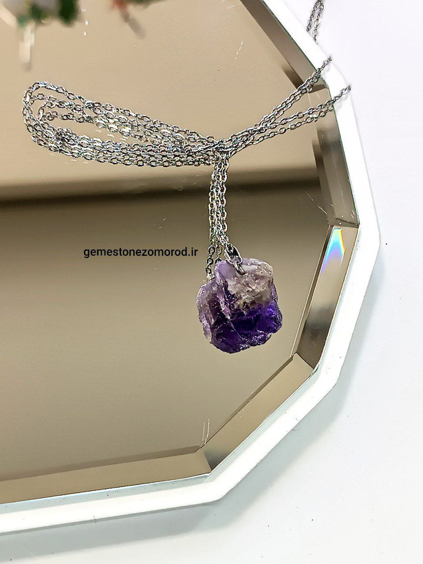 گردنبند سنگ آمیتیست طرح راف بلوری کیفیت عالی و درجه یک همراه با زنجیر دیپلمات استیل