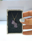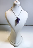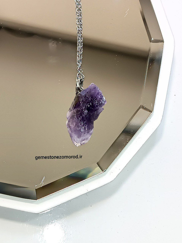 گردنبند سنگ آمیتیست طرح راف بلوری کیفیت عالی و درجه یک همراه با زنجیر دیپلمات استیل