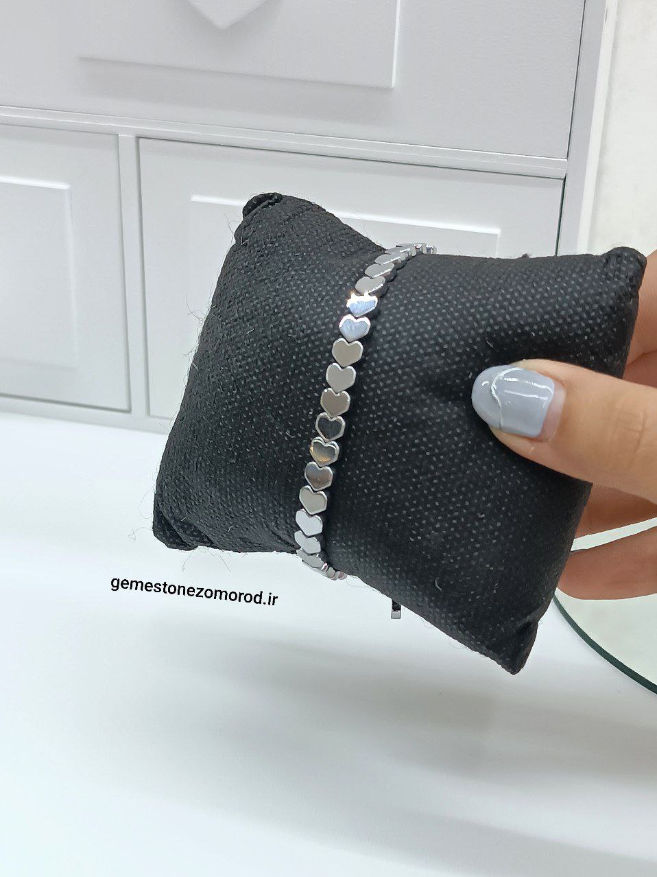 دستبند سنگ حدید طرح قلب ریز